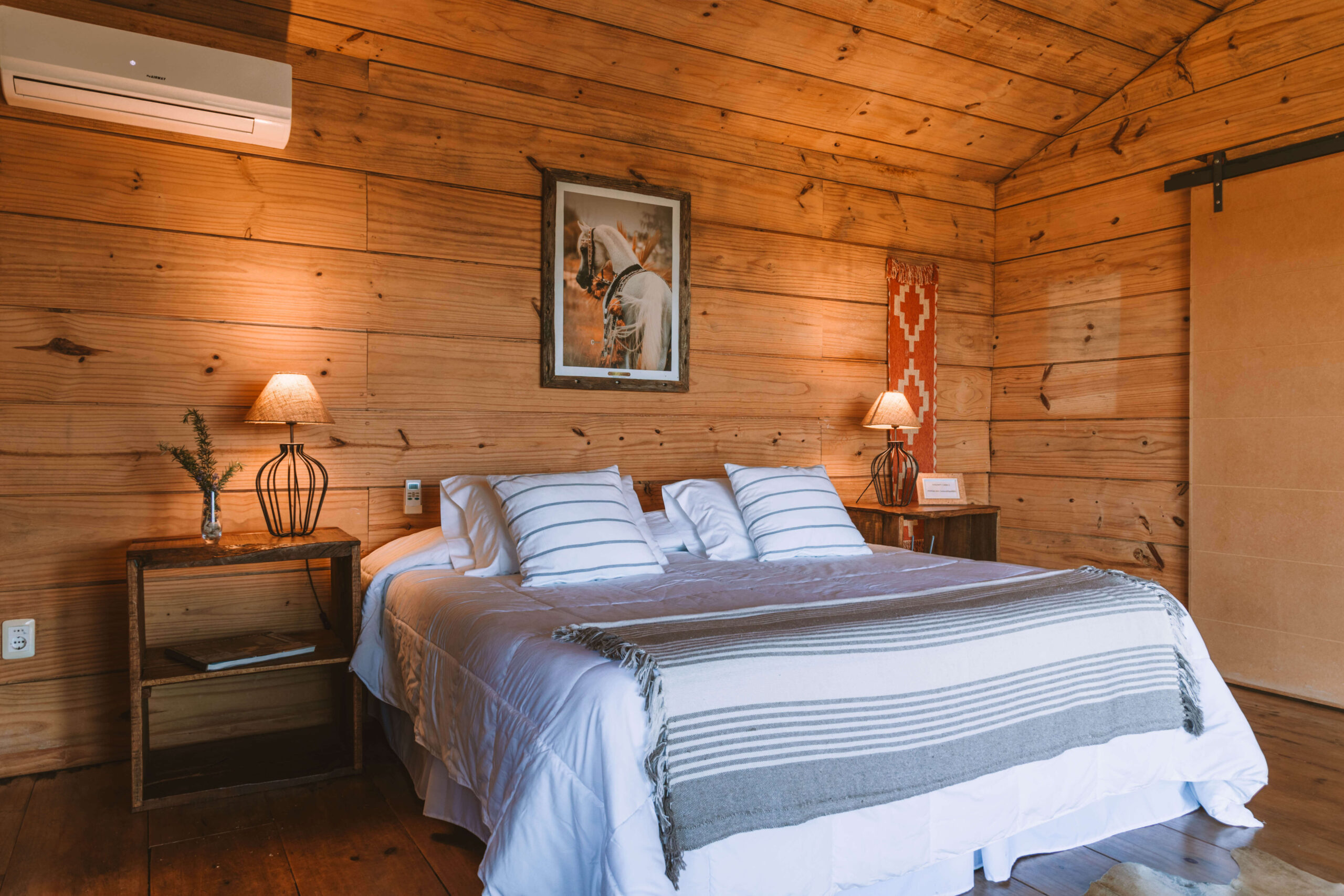 Nossas Cabanas Standard, situadas em paisagens serenas, oferecem um refúgio aconchegante com opção de uma cama de casal ou duas de solteiro. Desfrute de banheiros estilosos, áreas de vestir e facilidades para o seu café da manhã. Terraços privados se abrem para vistas da serra e da piscina. Os hóspedes tem café da manhã incluído e acesso ao nosso Club House e piscina. O Club House é uma obra-prima da arquitetura e conforto em madeira. Está equipado com sofás aconchegantes, um grande fogão, um bar de bebidas e uma cozinha para experiências culinárias requintadas. O amplo deck ao ar livre oferece vistas hipnotizantes de um lago tranquilo e das majestosas serras, criando um cenário perfeito para relaxamento e socialização. Para a tranquilidade e conforto de todos os nossos hóspedes, não são permitidos animais de estimação. Nossas casas e cabanas são exclusivamente para hóspedes adultos. Crianças são bem-vindas apenas na área correspondente ao nosso Estábulo Renovado (que não dá acesso às áreas comuns). A proposta de hospedagem no Haras Las Tordillas é criar momentos inesquecíveis de descanso, leitura, caminhadas e boas conversas, em ambientes e paisagens com um encanto especial que potencializarão sua conexão com a natureza. Por esse motivo, no Haras Las Tordillas não há televisores.